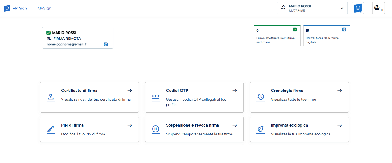 Il sistema darà conferma del successo dell’operazione reindirizzando alla home page del portale My Sign.