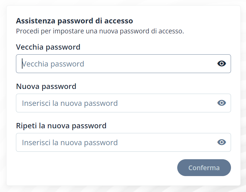 Dopo aver inserito la password una seconda volta, è necessario procedere con un click sul pulsante Conferma.