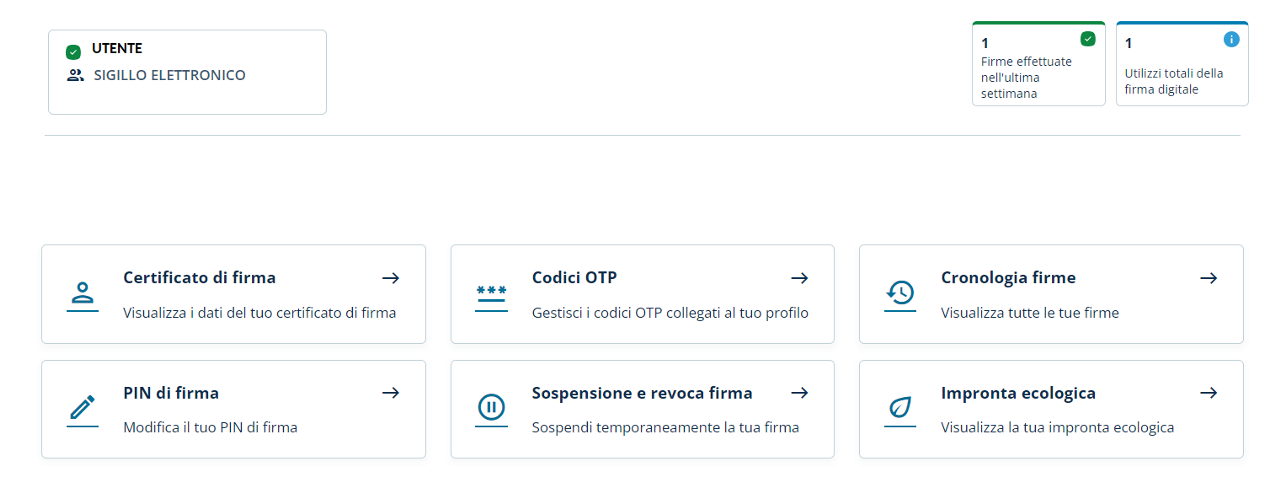 Al termine dei passaggi sopra riportati, la procedura condurrà alla home page di My Sign, il portale dove è possibile gestire il proprio certificato di firma.