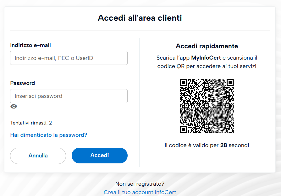 Una volta ottenute le credenziali, sarà necessario connettersi alla pagina del portale My Sign.
