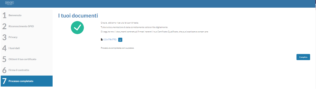 Il processo risulterà cosi completato e sarà possibile scaricare il contratto.
