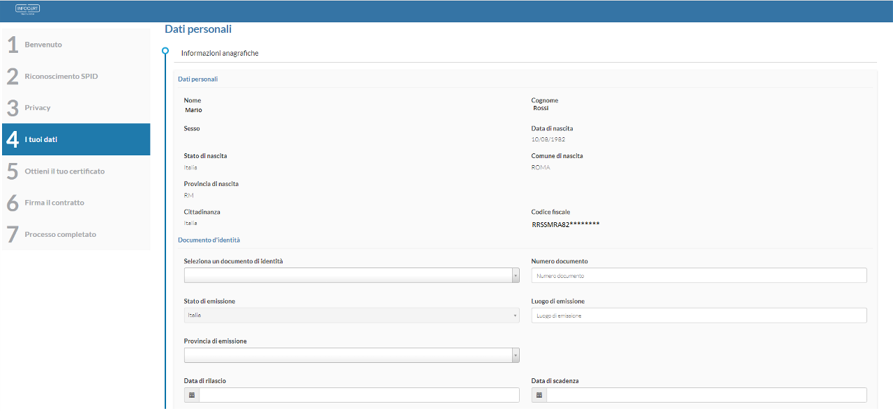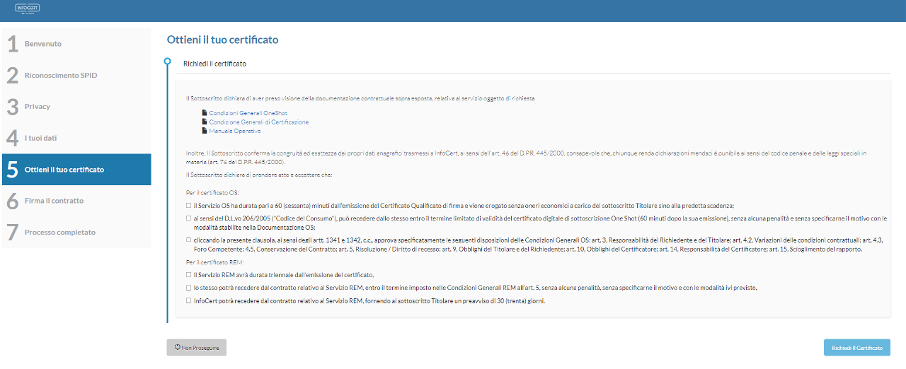 Sarà necessario cliccare sul tasto Richiedi il certificato per passare allo step successivo.