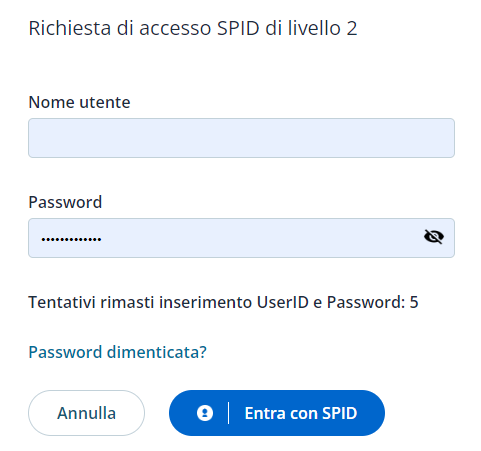 Sarà necessario procedere inserendo le proprie credenziali SPID e verrà richiesta l’autorizzazione di livello 2.