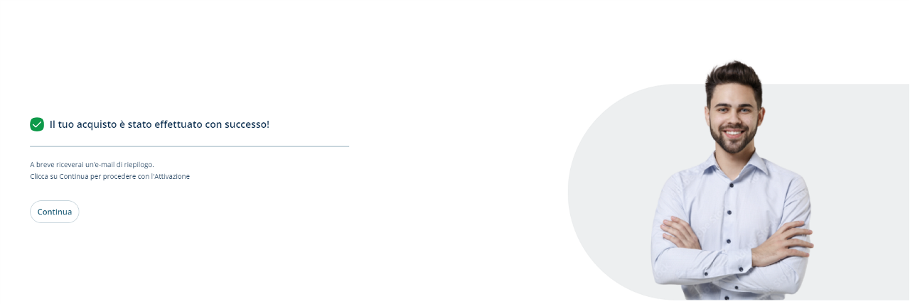 L’acquisto verrà confermato e sarà possibile cliccare sul tasto Continua per procedere con l’attivazione: