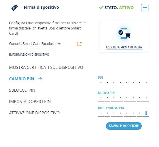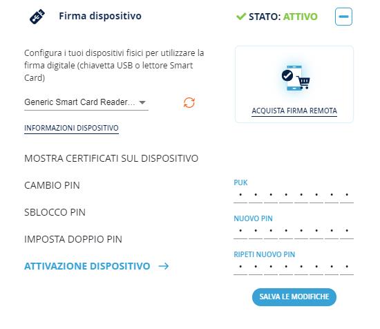 Se si vuole utilizzare un dispositivo per la Firma Digitale prima di utilizzarlo devo essere attivato, ovvero sostituire il PIN ad esso assegnato con uno a scelta ed esclusiva conoscenza dell’utente.