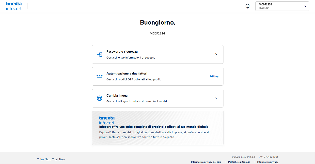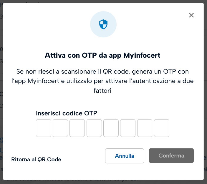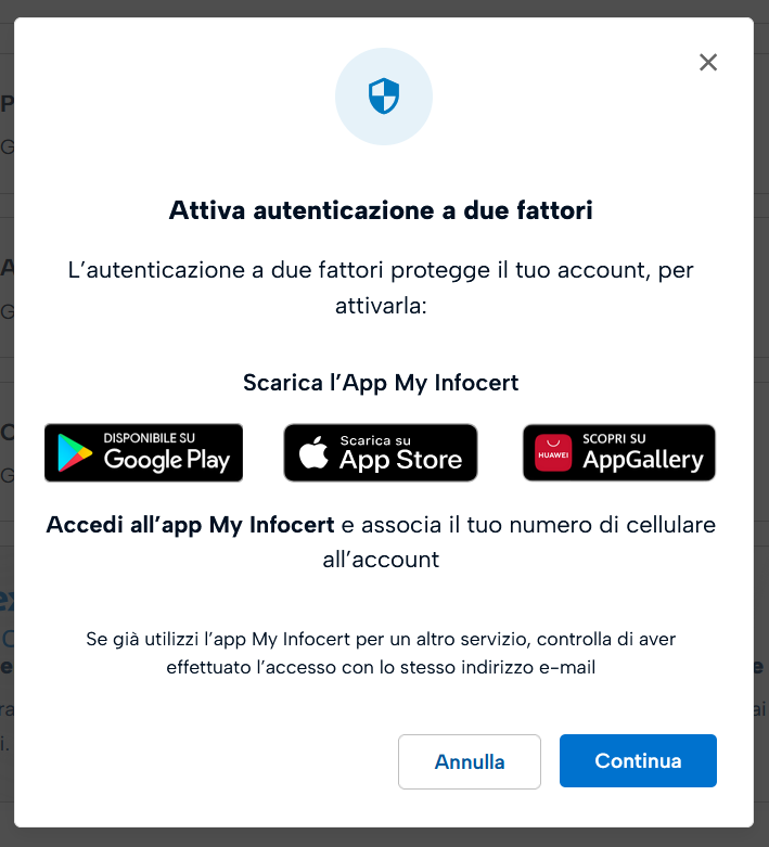 Per attivare l'autenticazione a due fattori è necessario scaricare gratuitamente l'app My Infocert e completare la configurazione della stessa inserendo le proprie credenziali di Firma.