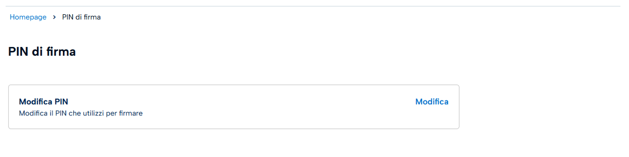 All’interno della sezione PIN di firma è possibile modificare il PIN di protezione del proprio certificato.