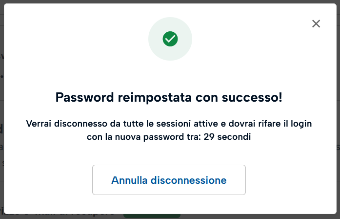 Fai click su Conferma per convalidare l'operazione di cambio password.