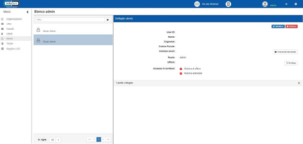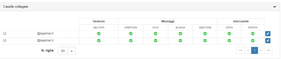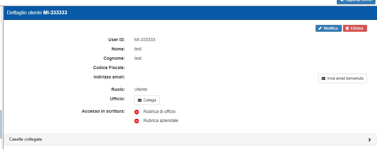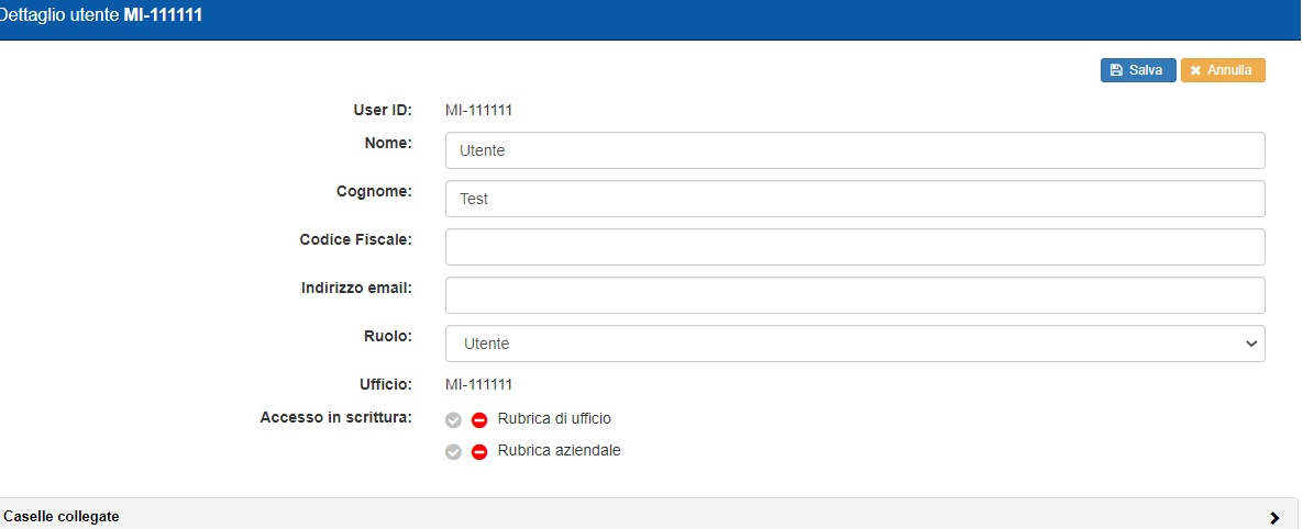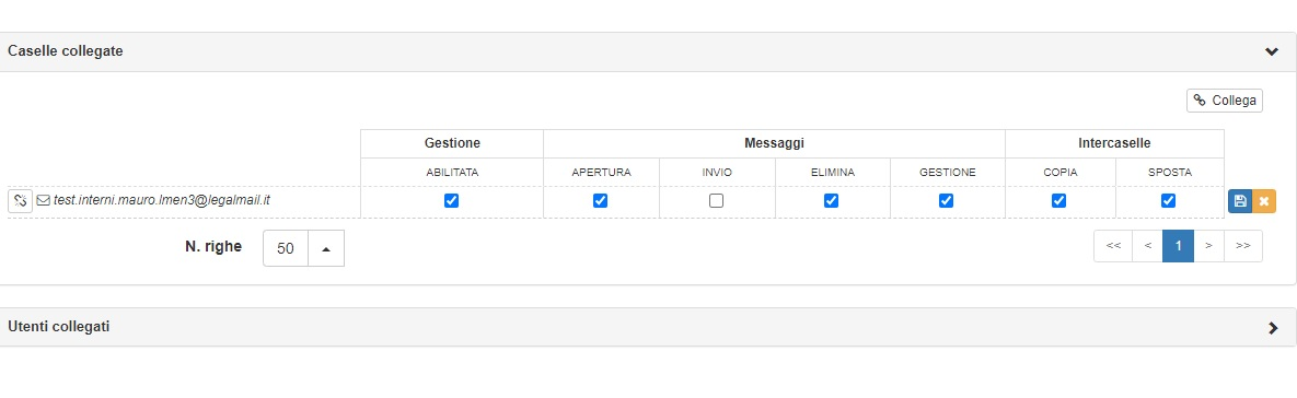 Per gestire i permessi relativi di un utente è sufficiente espandere la sezione “Caselle collegate” e procedere alla modifica.
