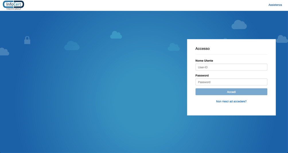 L’accesso avviene utilizzando il Nome Utente e la password fornite da InfoCert o fornite da un altro Admin.