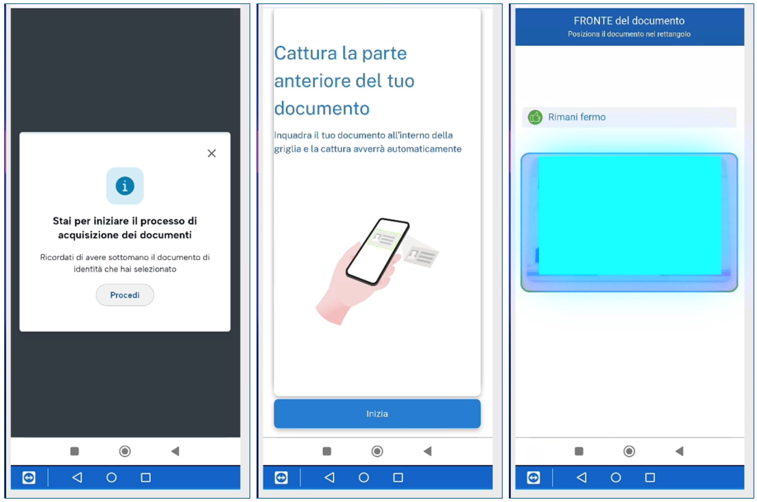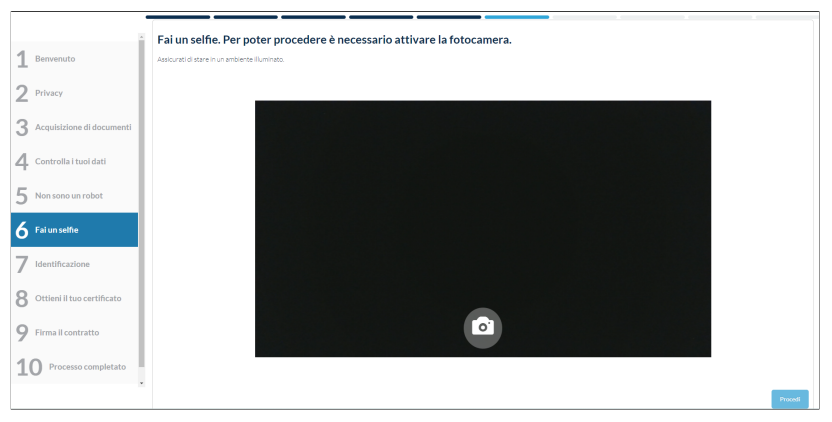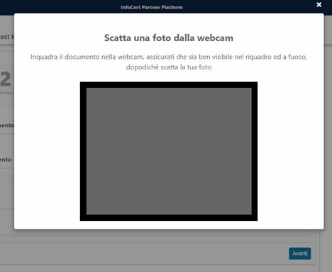 Se invece si decide di cliccare sull'opzione Fotografa con webcam, concedendo il permesso di accesso alla fotocamera, sarà possibile inquadrare e fotografare il documento scattando una foto: