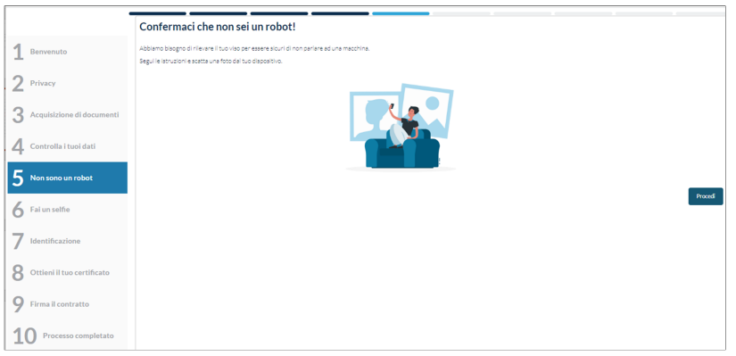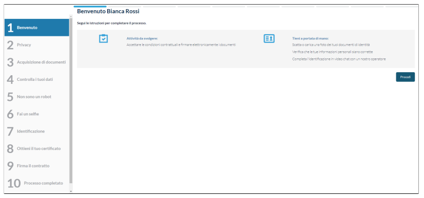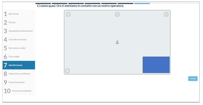 Il processo di richiesta ed emissione con riconoscimento SelfQ offre la possibilità di identificare il richiedente da remoto tramite un video riconoscimento semi-automatico.