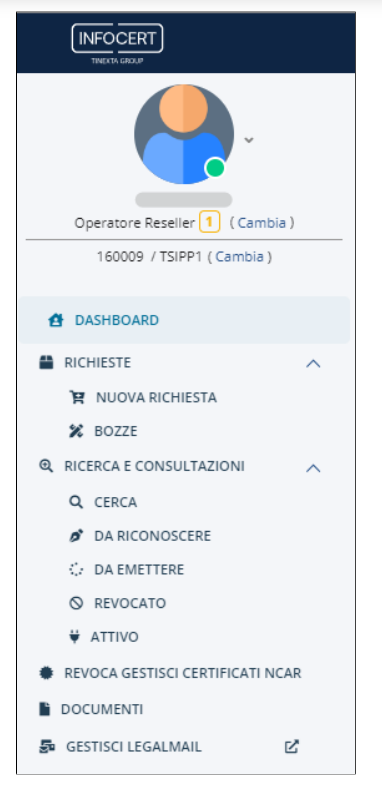 Cliccando nel link Cambia sotto l'immagine e il codice operatore sarà possibile modificare il profilo e l'unità di lavoro (switchando tra i profili e le unità impostate per quel determinato cliente).