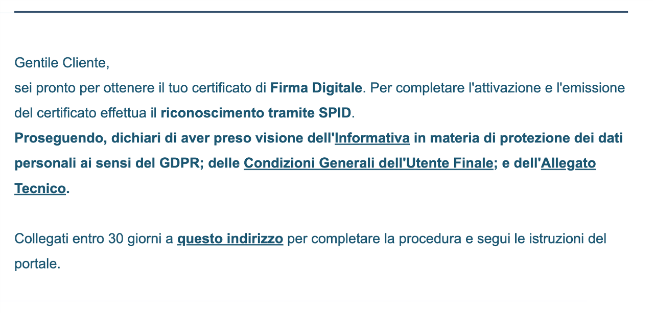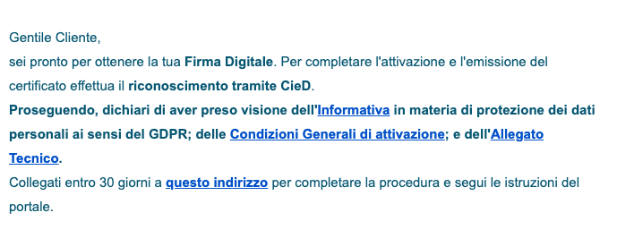 "Completa il processo di Firma Digitale: https://......"