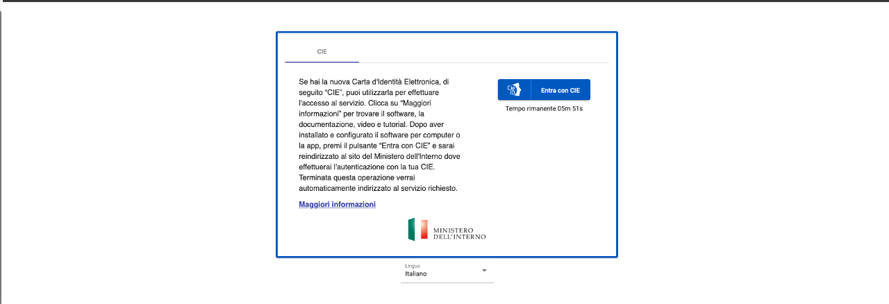 Il soggetto si autentica con CIE premendo il pulsante "Entra con CIE".