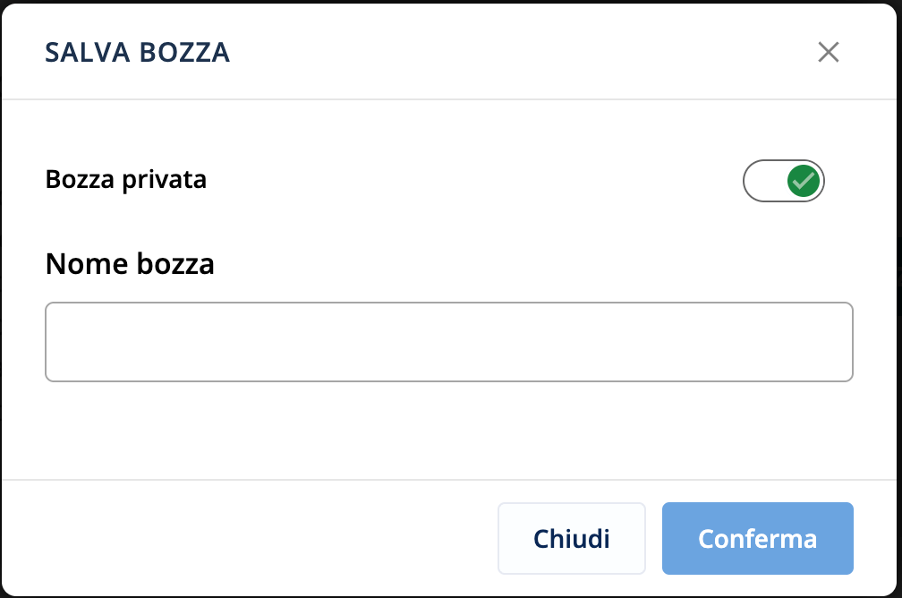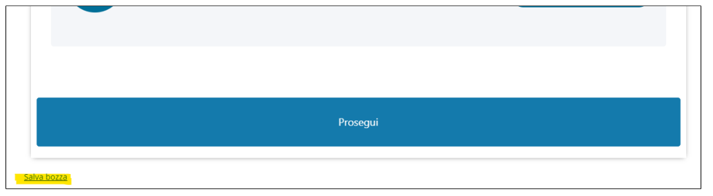 Il processo può essere interrotto in qualsiasi momento, facendo click sul link in basso a sinistra per salvare una bozza con nome: