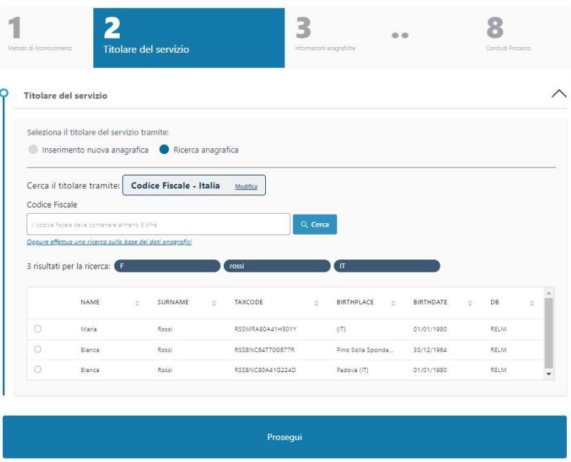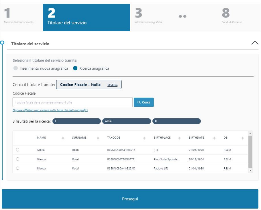 Se al contrario l'anagrafica del richiedente sia già esistente nei sistemi è possibile ricercarla cliccando sull'opzione Ricerca anagrafica