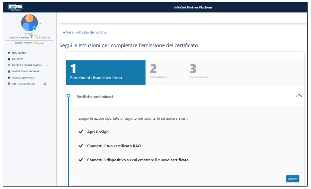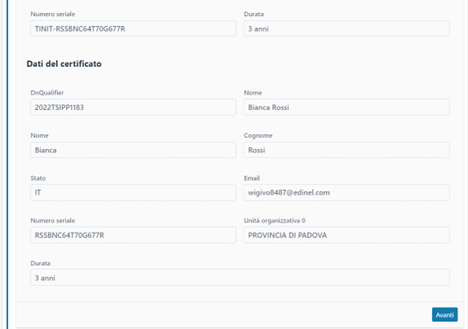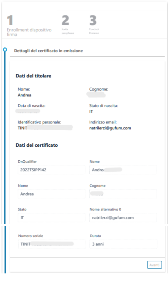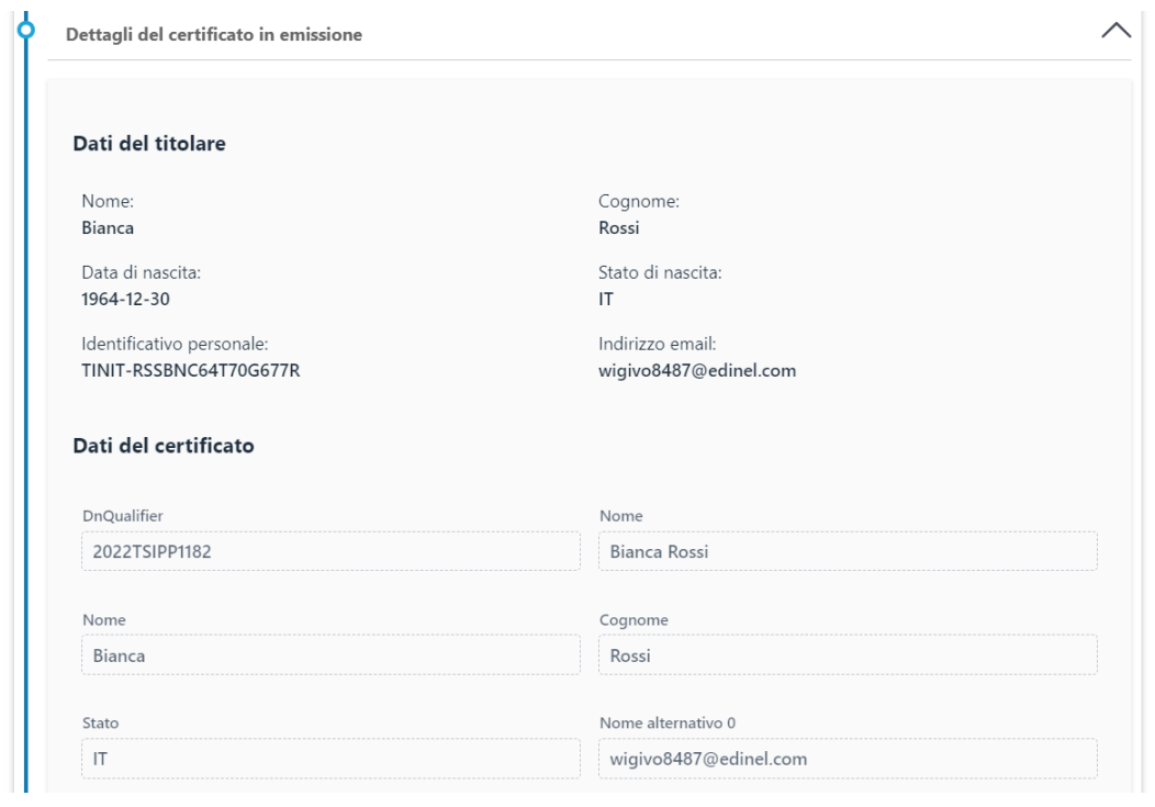 Per prima cosa, Il RAO deve confermare i dettagli del certificato: