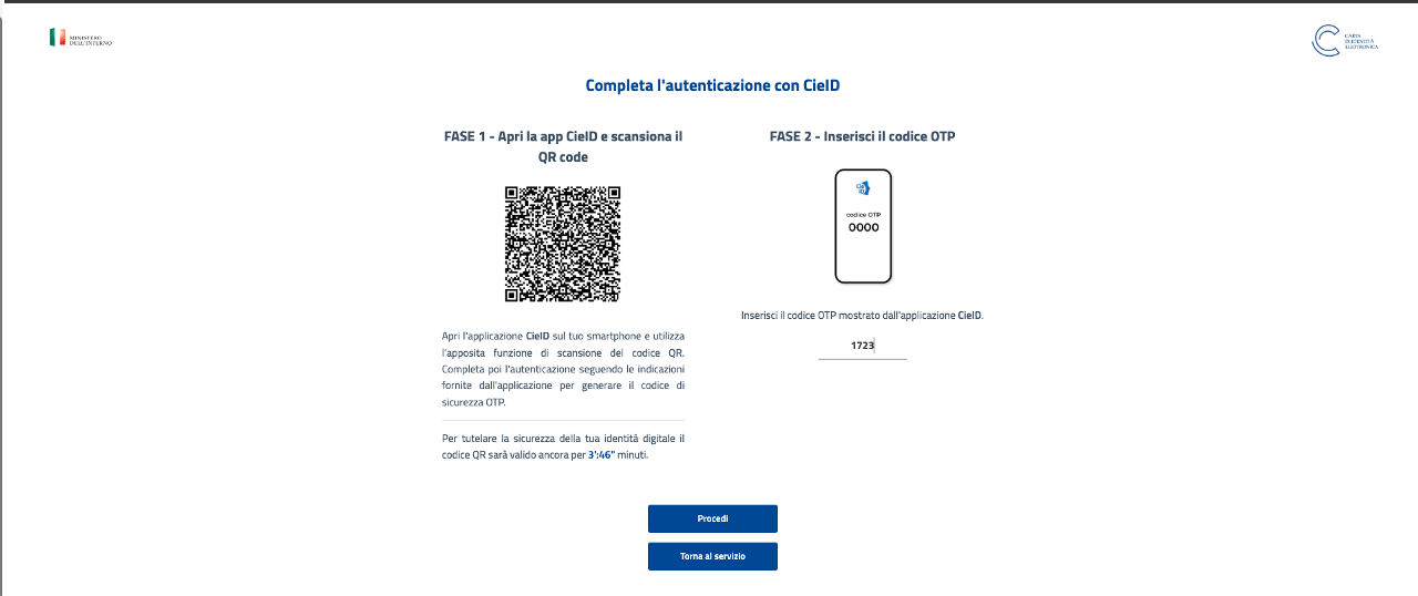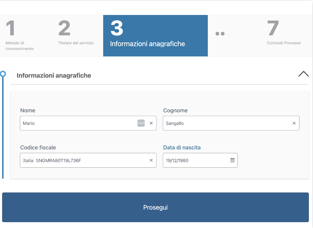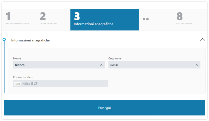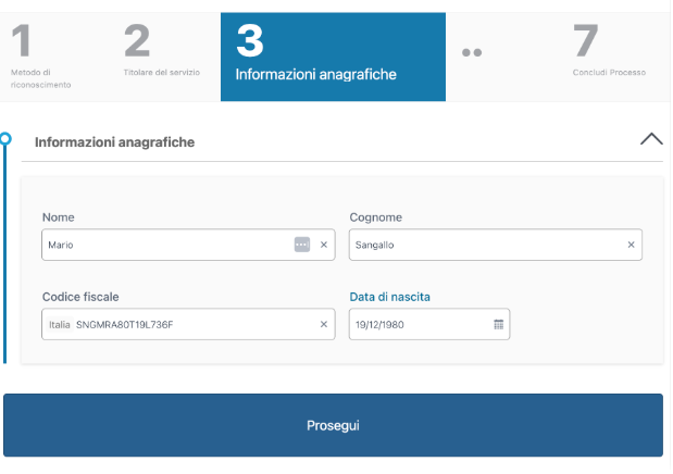 Infine si conclude l'identificazione del richiedente cliccando su Continua: