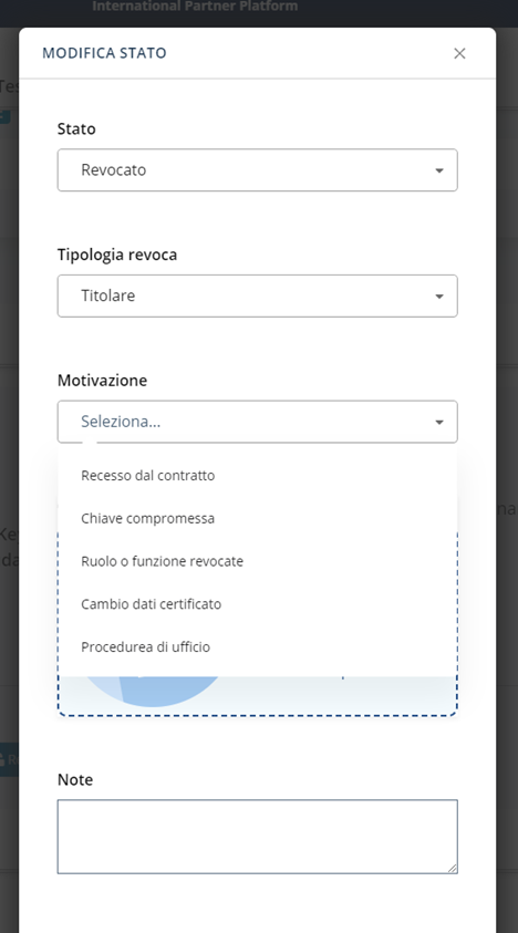 Oltre alle funzionalità legate al rilascio dei servizi Tinexta Infocert, come i prodotti di firma, IPP consente anche di gestire il ciclo di vita dei prodotti di firma, nello specifico è possibile sospendere o revocare i servizi.