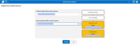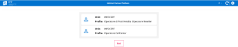 Dopo l'accesso, in caso l'utente abbia configurato più uffici per lavorare sulla piattaforma, dovrà selezionare il profilo d'interesse:
