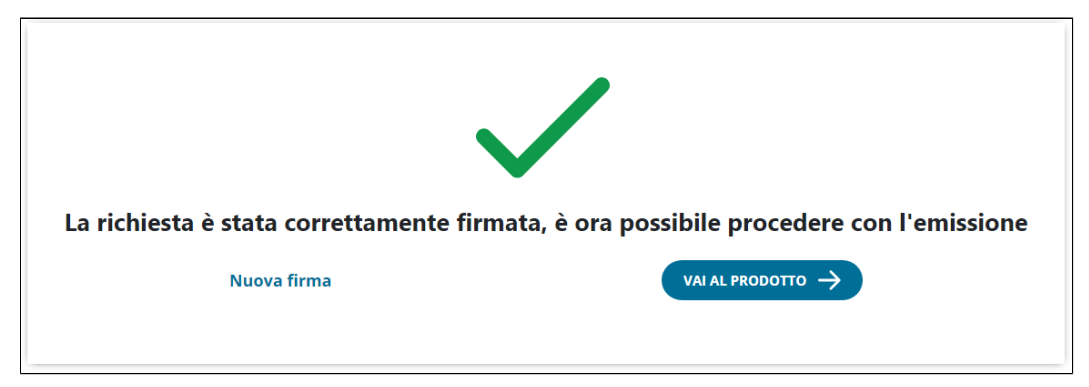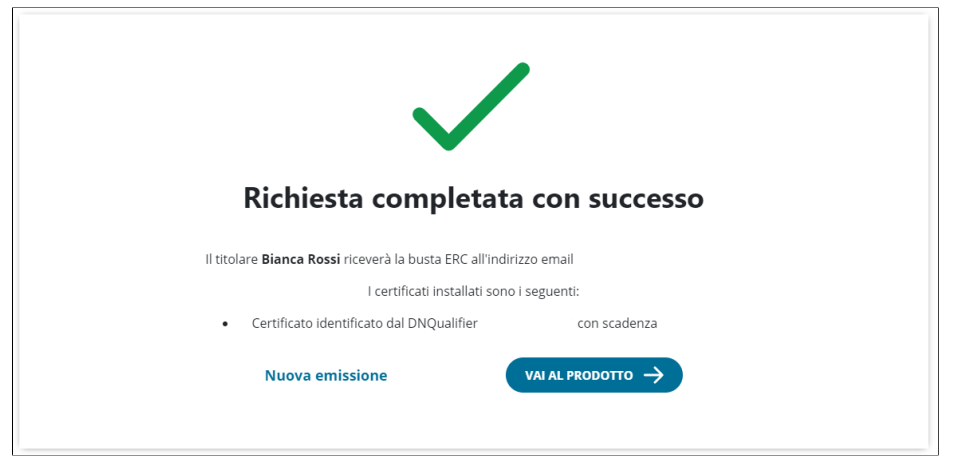 Cliccando su Prosegui questa parte del processo è terminata e si ha la conferma di successo dell'operazione: