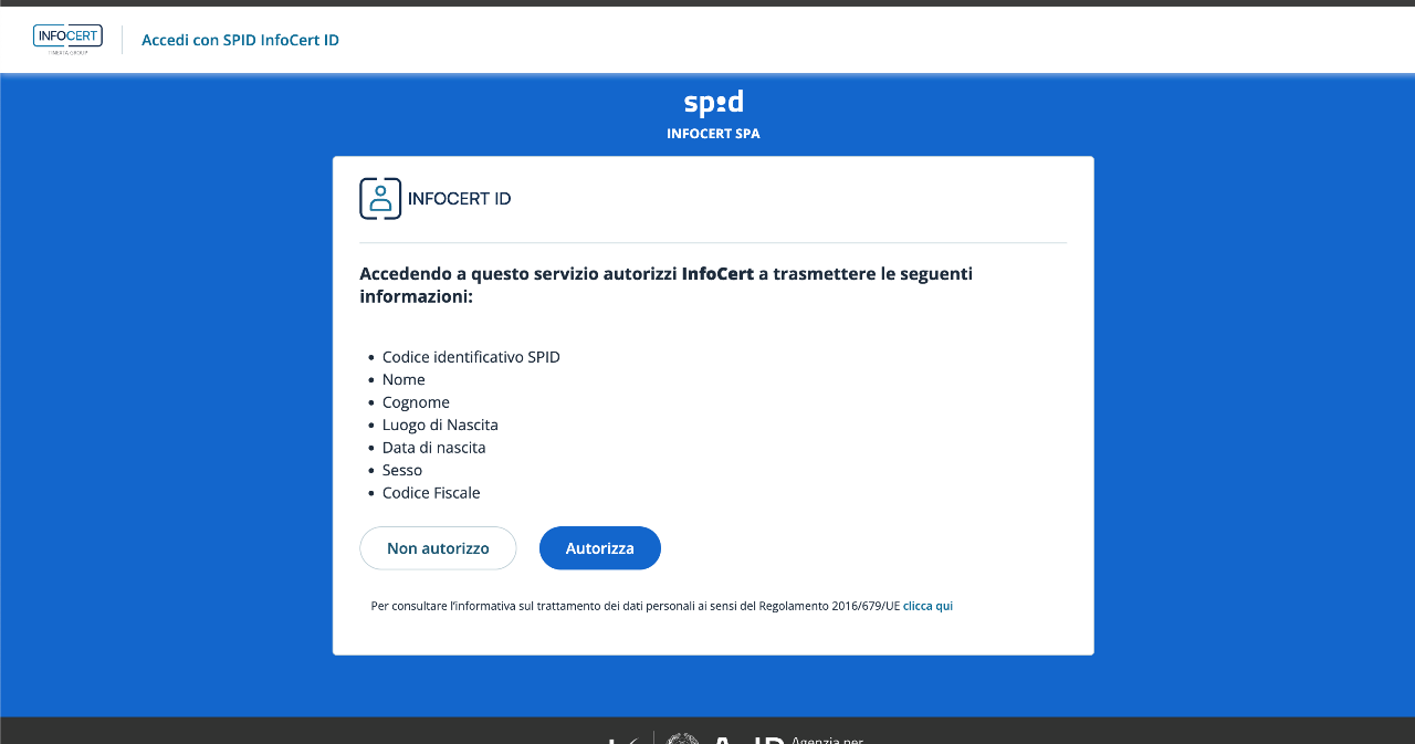 A seguito dell'autenticazione l'Identity Provider, il soggetto dà l'autorizzazione al trasferimento di alcuni attributi.