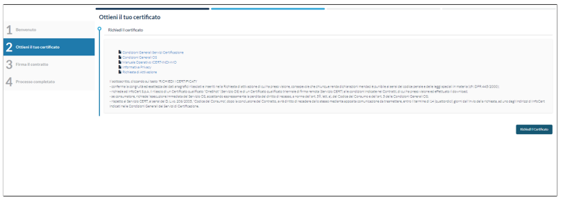 Il soggetto per proseguire preme il pulsante "Richiedi il Certificato".