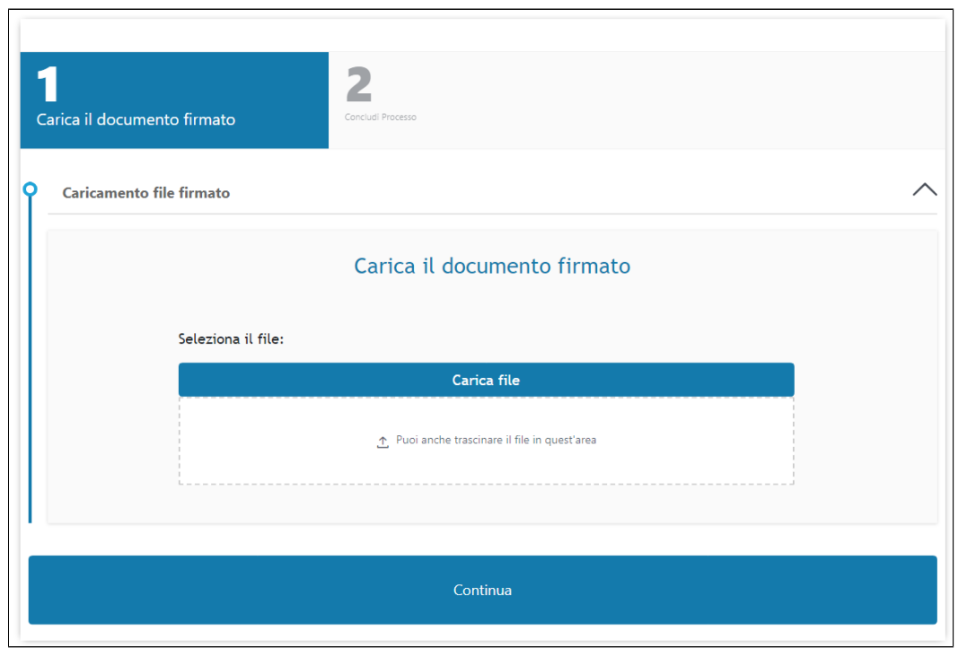 L'IR (o RAO) atterra su una pagina dove caricare il Modulo di richiesta firmato in modalità autografa: