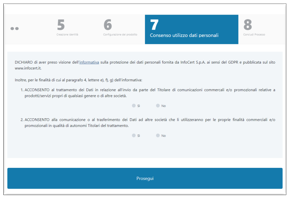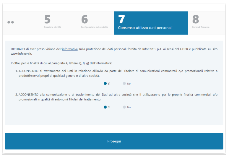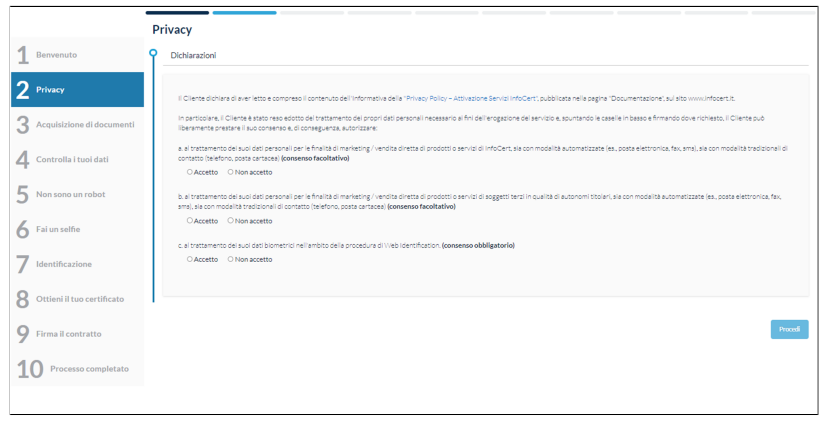 E' importante che la parte di consenso sia presente tale e quale nel modulo di firma del richiedente.