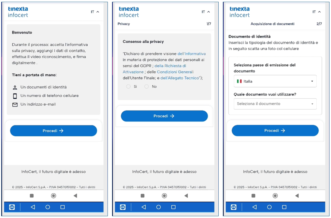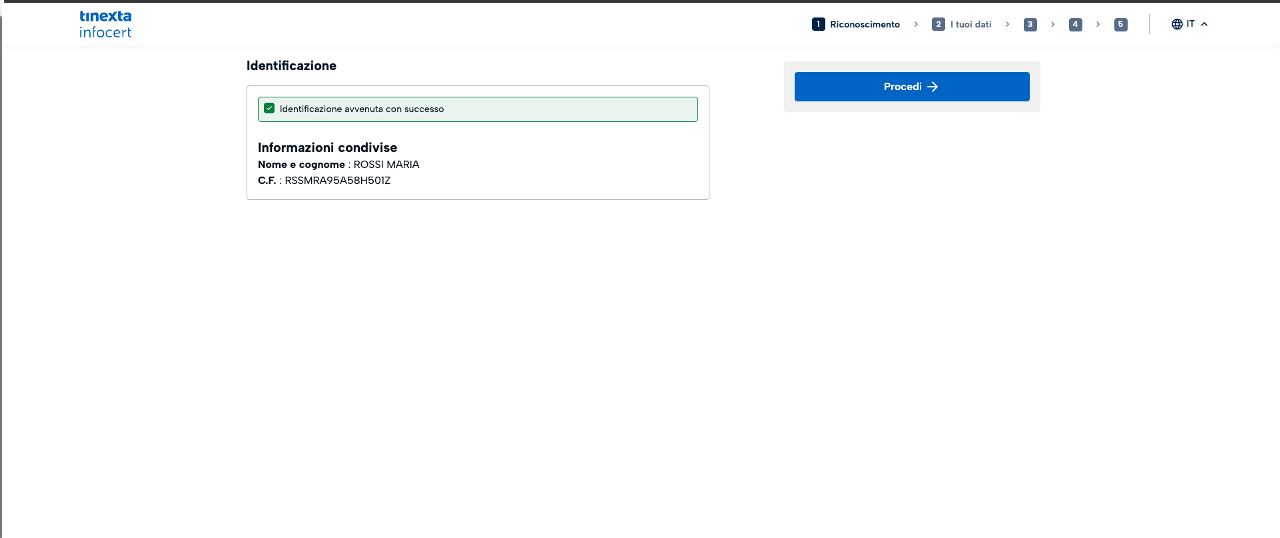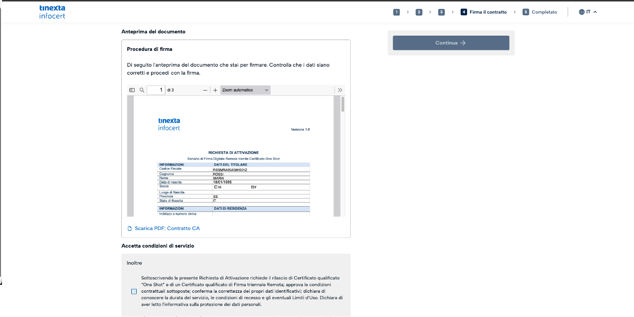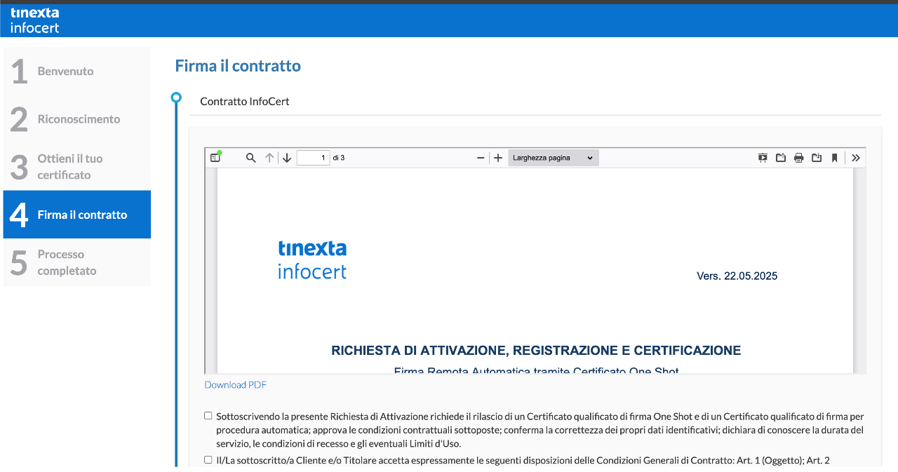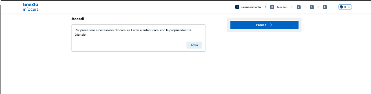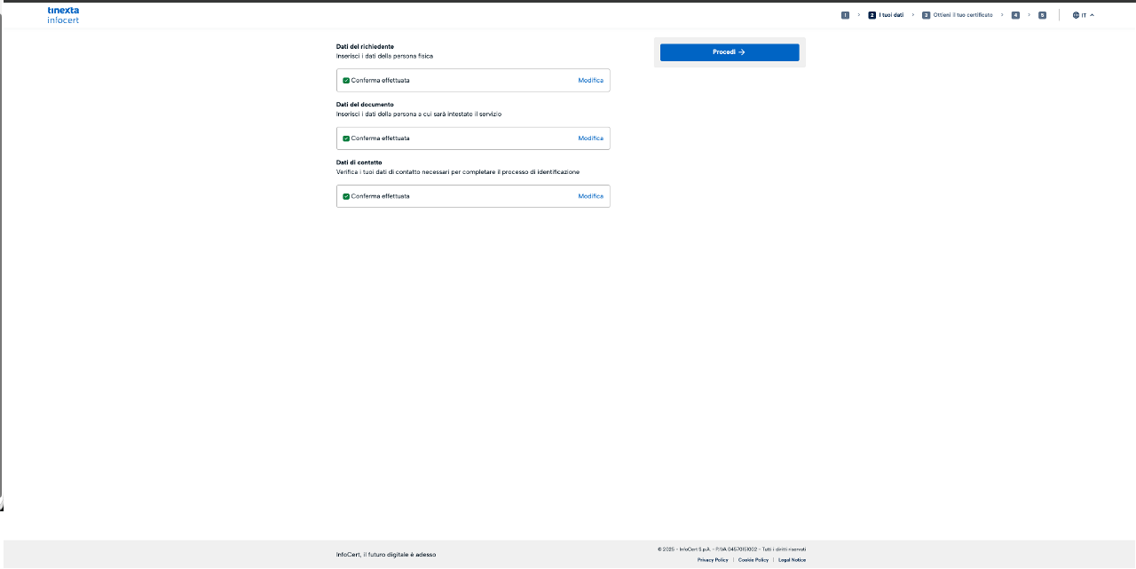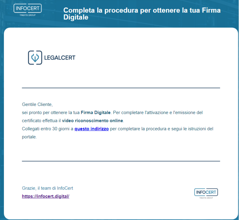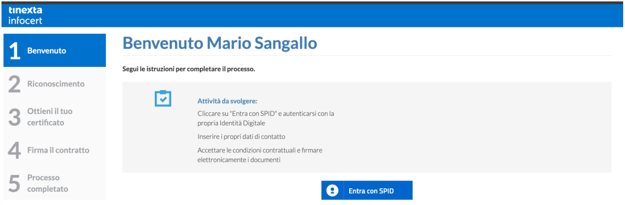 Cliccando il link, l'utente atterra sul portale Tinexta Infocert per avviare il processo: