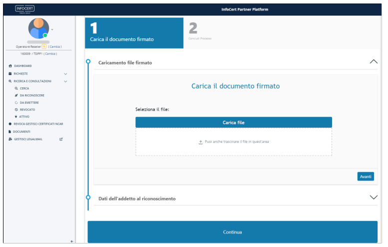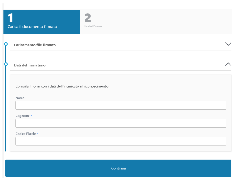 _Cliccando su Avanti si aprirà la sezione per inserire le informazioni dell'addetto al riconoscimento:
