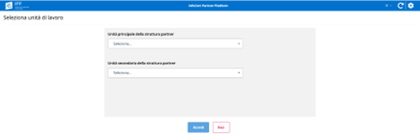 Successivamente, dovrà selezionare (scrivendo o selezionando dai menù a tendina) la unit d'interesse indicando l'unità principale e la secondaria in cui vuole accedere: