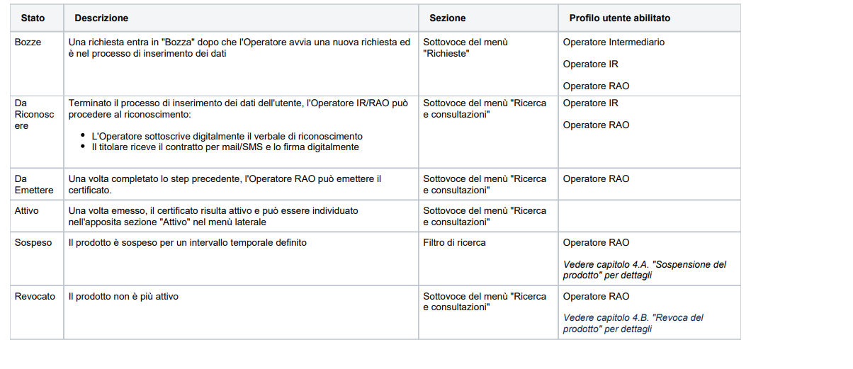 Infine, per lavorare le richieste in alcuni stati, è necessario avere un profilo utente abilitato.