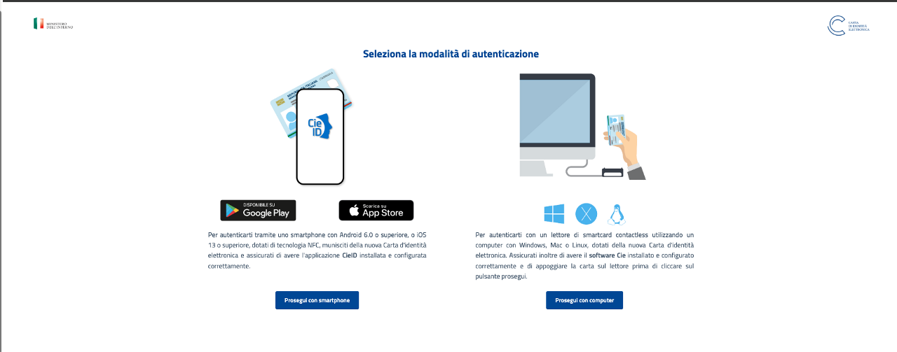 Il processo di richiesta ed emissione con riconoscimento CIE offre la possibilità di identificare il richiedente da remoto tramite un accesso CIE, effettuando l'intero processo in digitale.