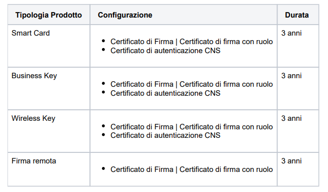 Da notare che i prodotti di firma con identificazione SPID hanno una limitazione d'uso perché non possono essere utilizzati per la richiesta di uno Identità digitale SPID.