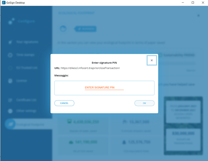 Confermati i dati del certificato, il RAO procede alla propria autenticazione su GoSign Desktop, inserendo PIN e l'OTP di firma per effettuare la configurazione del dispositivo: