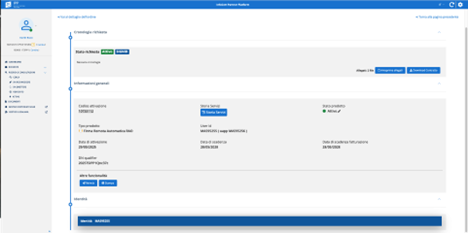 A seconda dello step a cui l'operatore è arrivato, la richiesta si troverà in un determinato stato e sfruttando il menù di sinistra dell'applicazione, potrà essere lavorata: