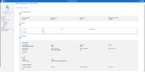 ▪ Informazioni generali: codice di attivazione, stato della richiesta, tipo di cliente, operatore di inserimento, stato contratto