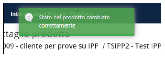 Apparirà un messaggio di avvenuta modifica e lo stato del prodotto passerà in revocato: