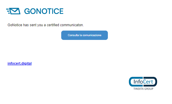Il destinatario riceverà un e-mail, con l’invito a consultare la comunicazione ricevuta tramite GoNotice.