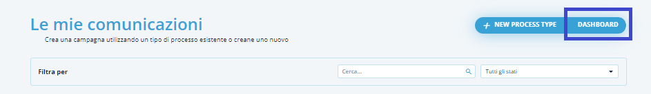 Sono presenti inoltre mini dashboard per ogni campagna e mini dashboard per singolo process type che si alimentano in base agli invii effettuati.