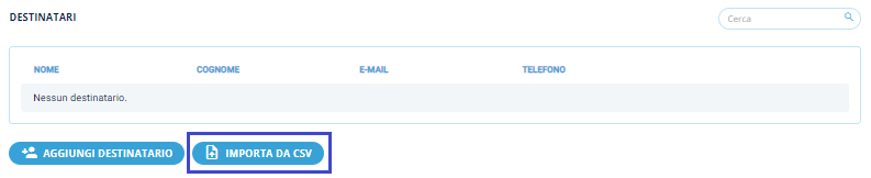 In caso di invio massivo verso più destinatari potrà essere importato l’elenco tramite file .csv, cliccando sull’apposito tasto Imposta da CSV: