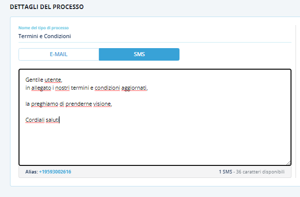 Stessa procedura per la creazione e utilizzo del processo tramite il canale SMS.