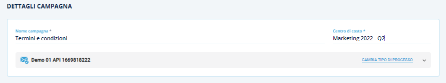 Sarà necessario inserire il Nome Campagna e associarvi il relativo Centro di Costo.