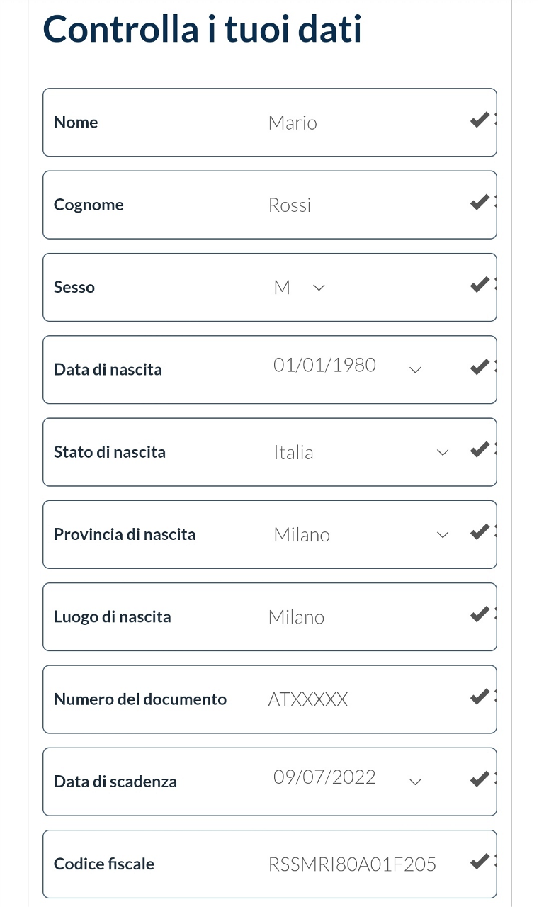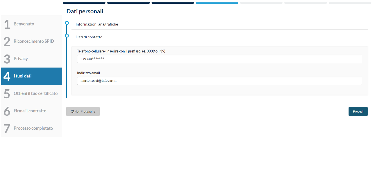 Il passaggio successivo consiste nel controllare i dati personali e modificarli qualora sia necessario o completarli.