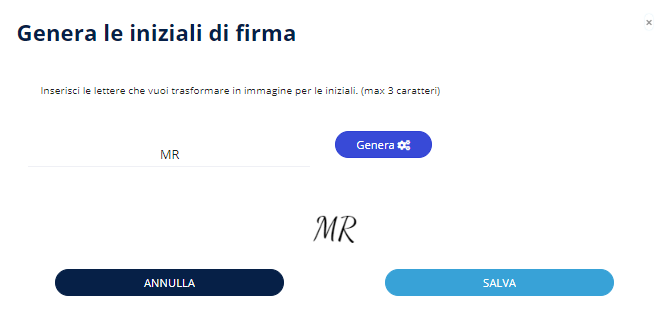 Le iniziali possono essere caricate premendo sul pulsante Sfoglia, oppure auto-generate cliccando sull'icona dei 3 puntini e digitando le iniziali.