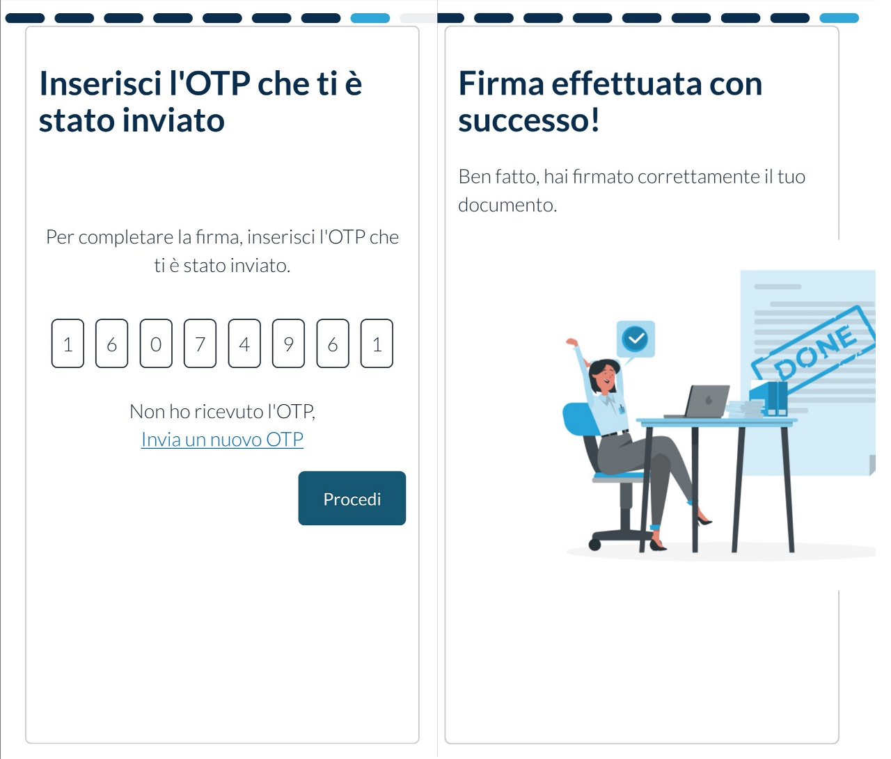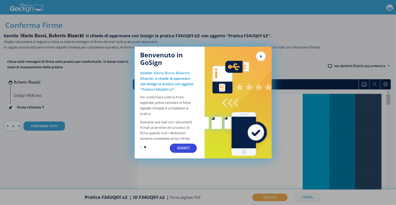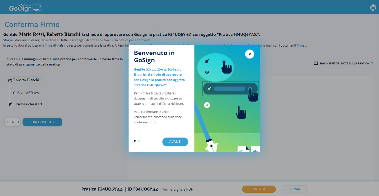 Prima di visualizzare i documenti da firmare, un breve tutorial spiega all’utente come proseguire.