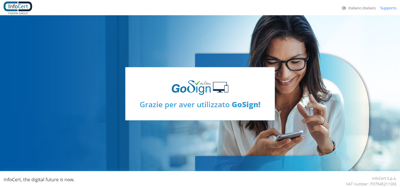 Una volta concluso il processo di identificazione, l’utente verrà reindirizzato su gosign.