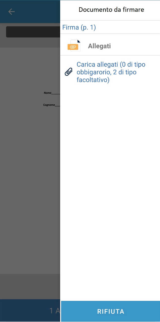 Nella parte alta dello schermo sono presentate le 3 funzioni di firma: